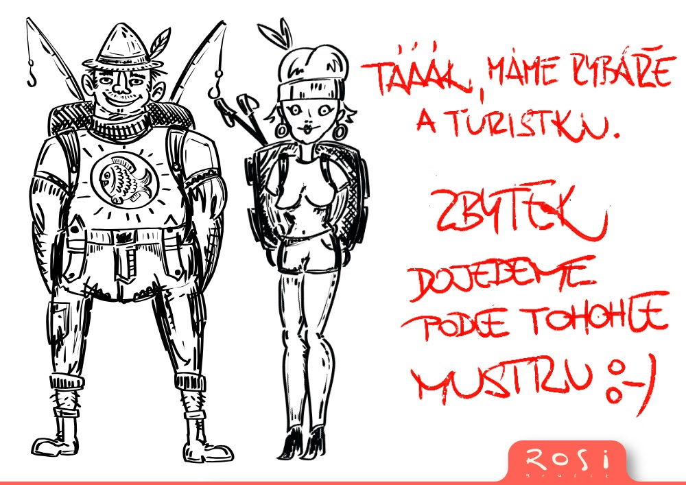 Kresba postaviček účastníků zájezdu „Expedice Juřinka 2020“.