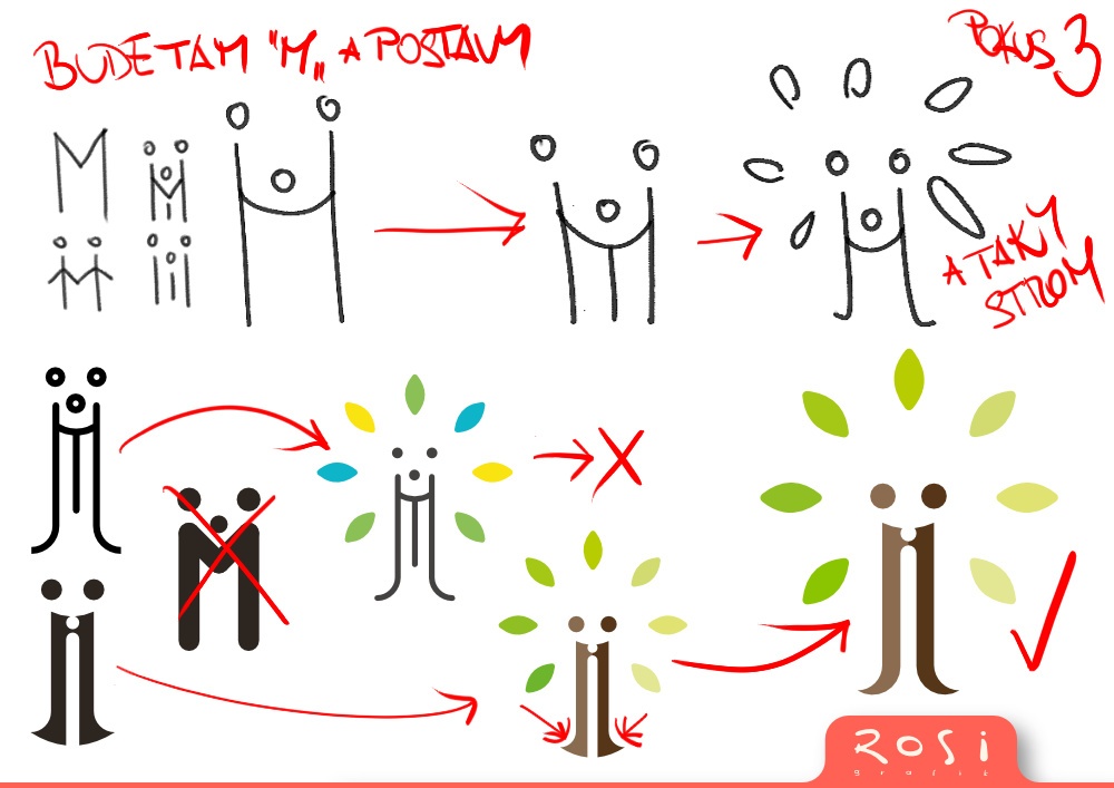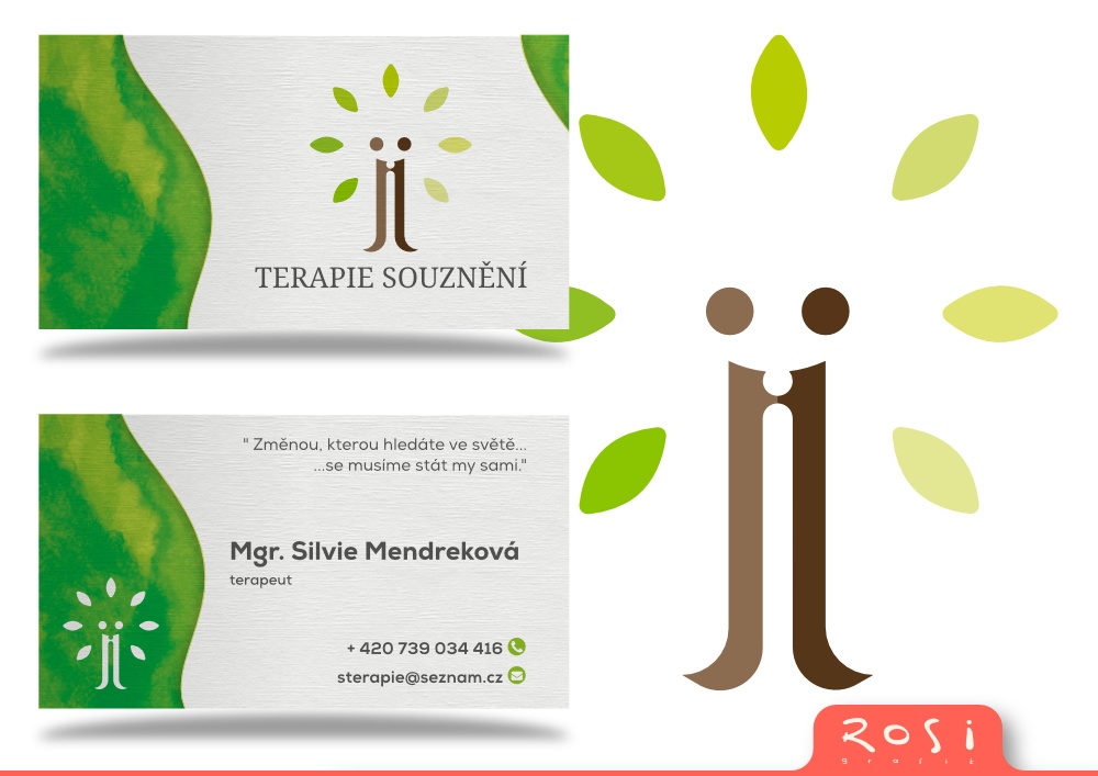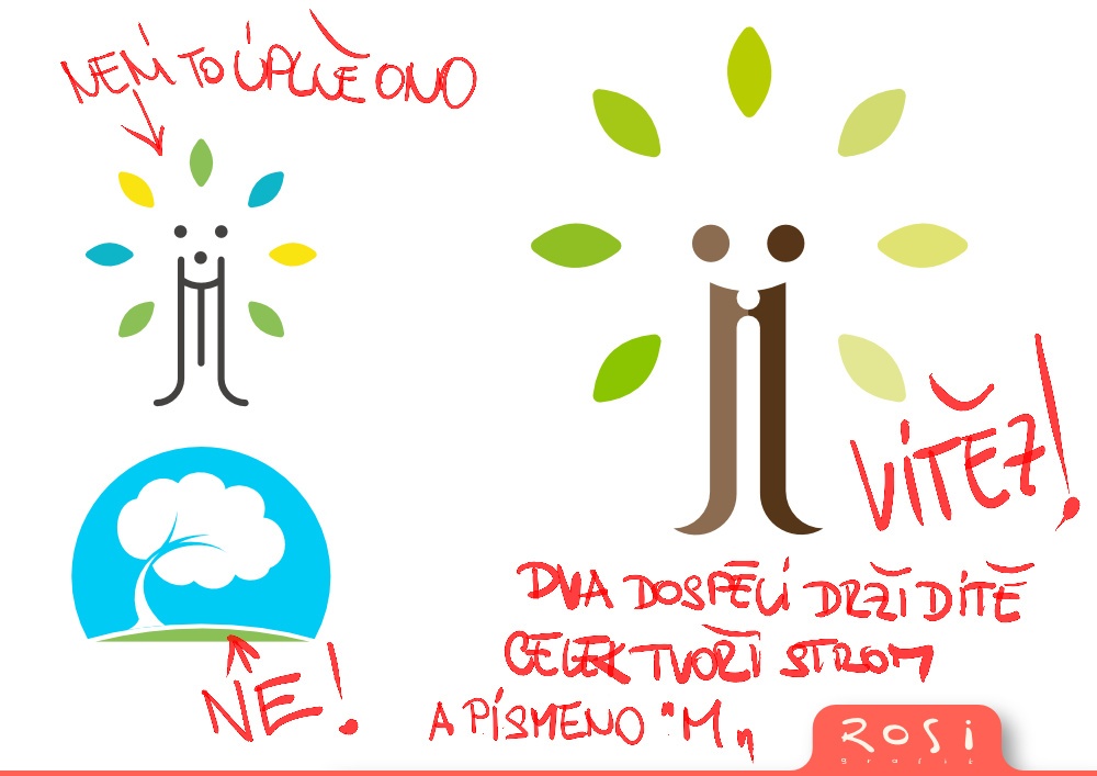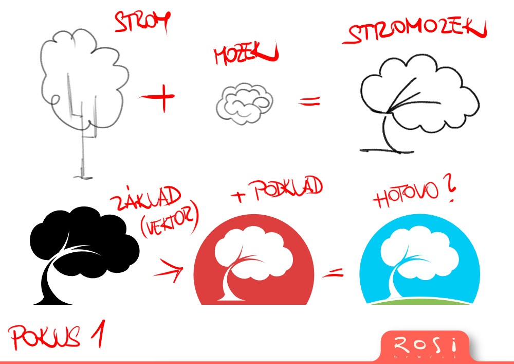 Jelikož se jedná o psychologickou poradnu, napadlo nás, že by se hodil mozek, zkusili jsme ho zkombinovat se stromem. Pak na nás ale strejda Gůgl vysypal asi tunu podobných obrázků, takže jsme tento směr opustili. Taky jsme se pokusili kombinovat inicilály majitelky, ale tohle nám taky nějak extra nevyšlo.